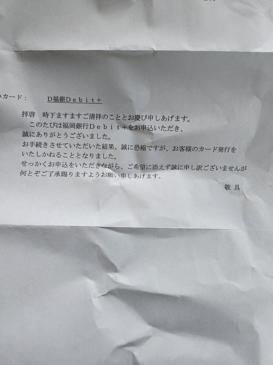 これデビットカードの発行を断られたんじゃなくて口座開設を断られた可能性もあるんじゃない?