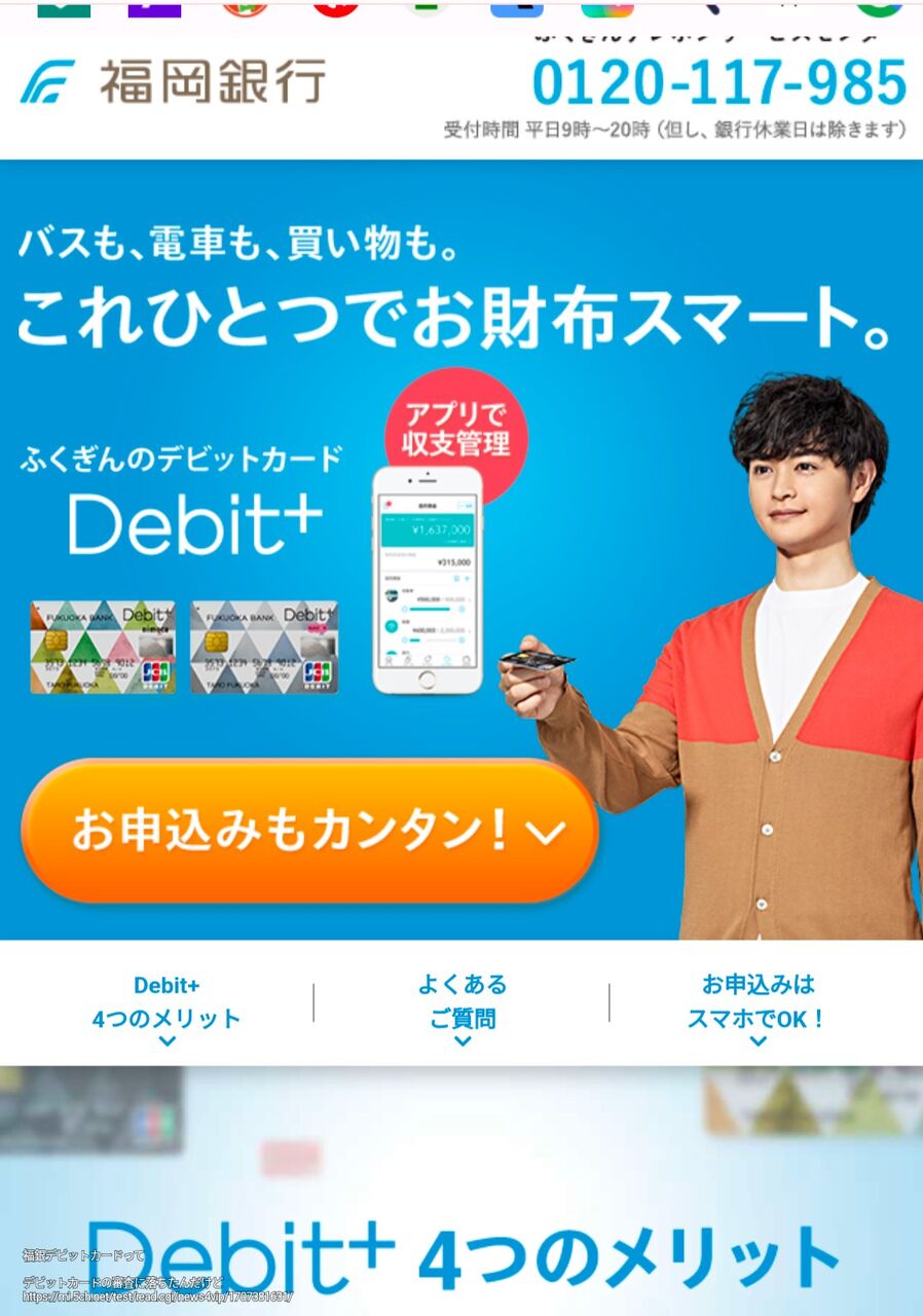 俺のメインバンクは申請無しでキャッシュカードがデビットカードになるわ